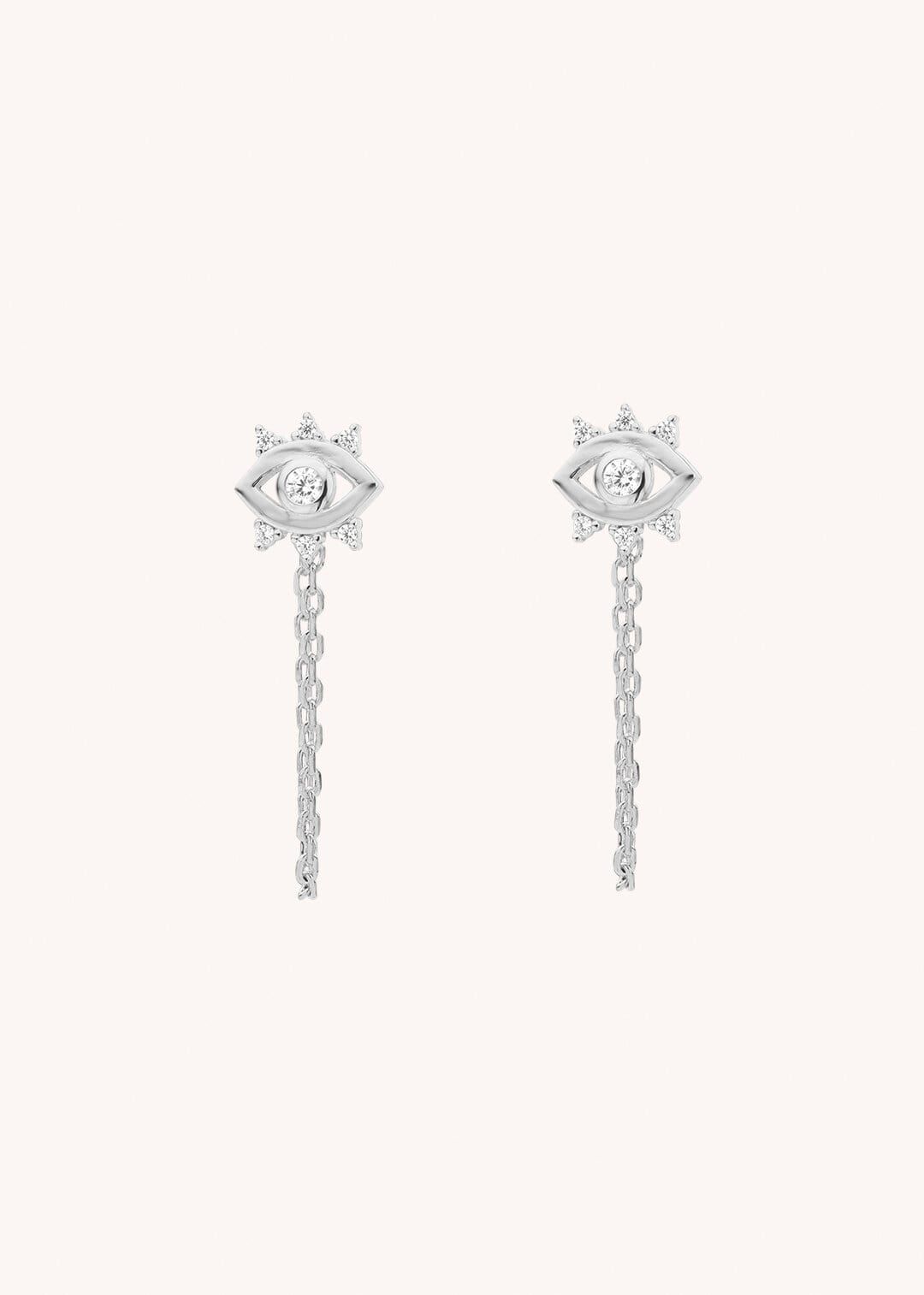 The LITTLE EYE CHAIN ??earring is gilded with fine gold or covered with a thin layer of silver. It is equipped with a chain which will add a rock touch to your style. This eye designed in a contemporary style is set with fine stones. This well-known symbol in the field of jewelry retains its status as a lucky charm and its mystical aura.
