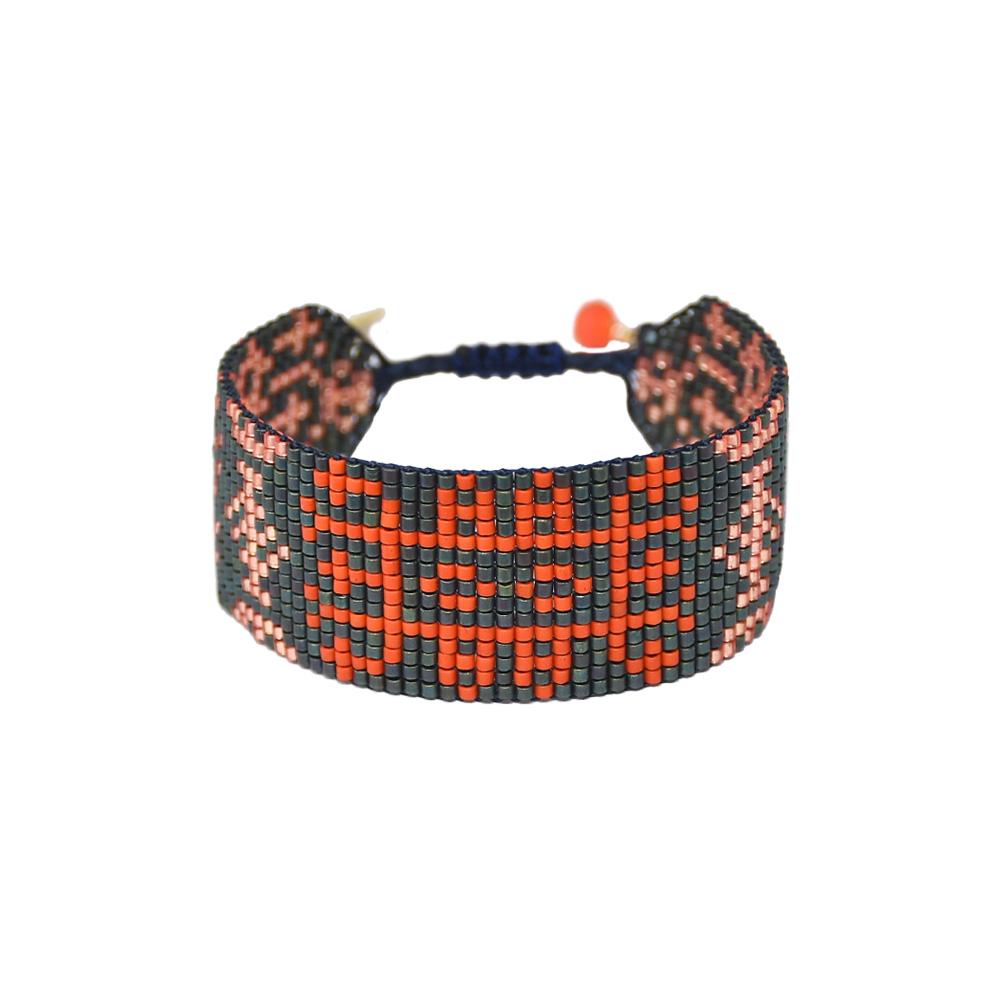 Japanese beads, polyester thread, bronze gold plated Mishky logo