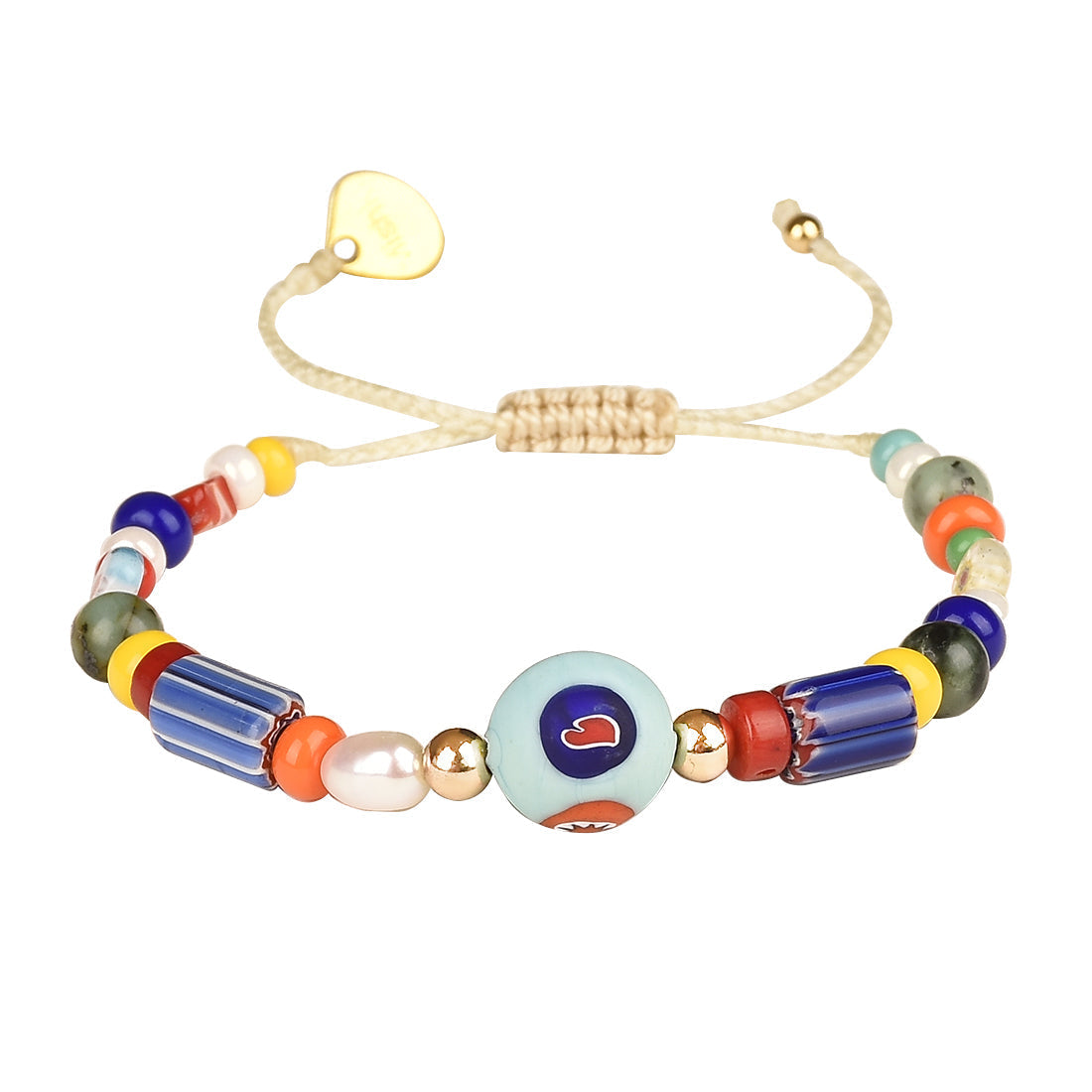 Round beads, glass beads, polyester thread, terlenka thread, Mishky bronze gold plated logo
