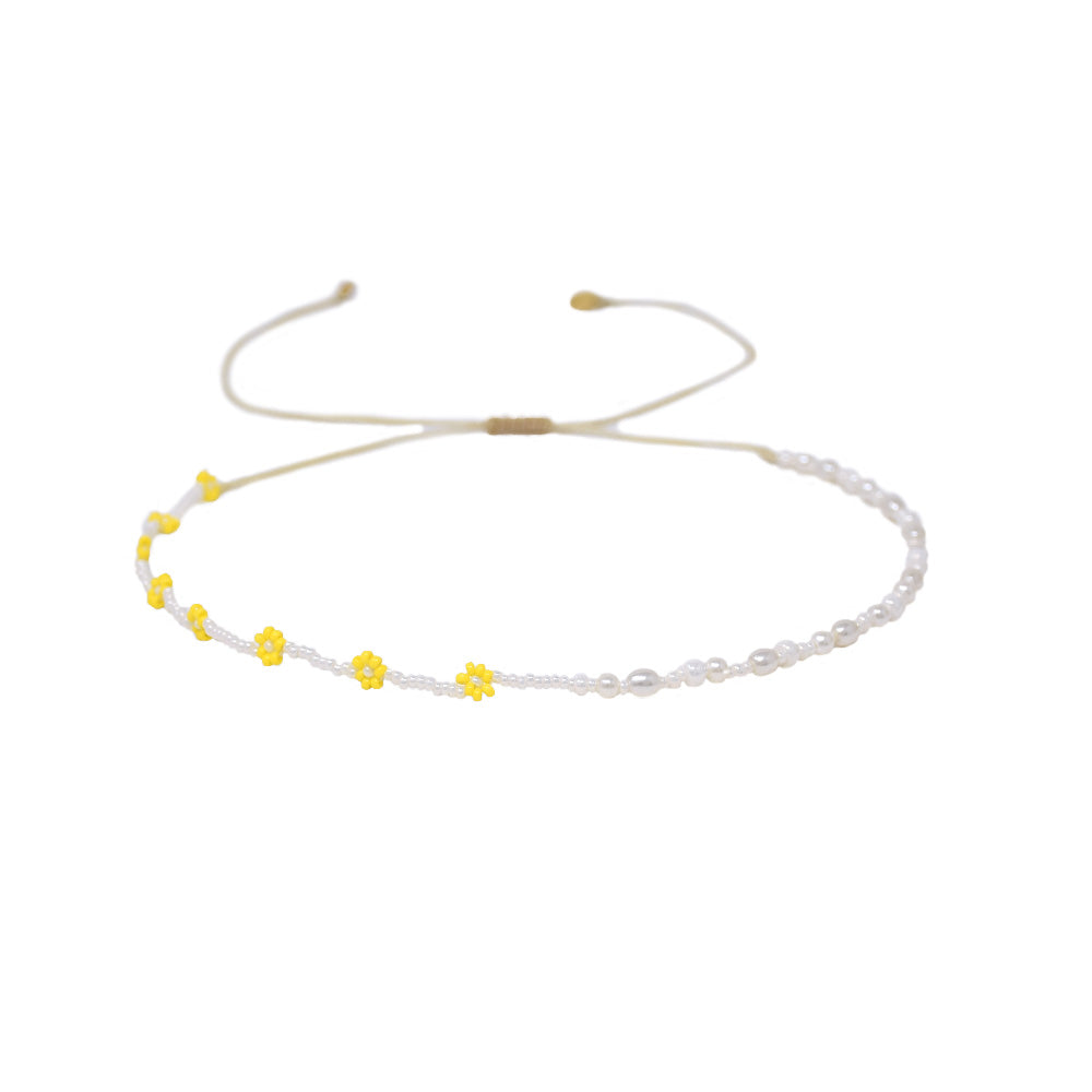 Glass japanese beads, polyester thread, synthetic pearl, Mishky gold plated logo