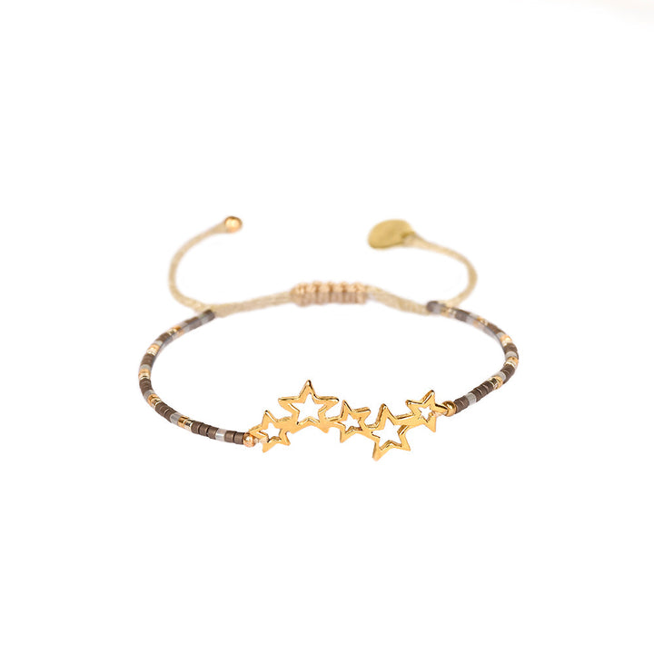 Japanese beads, polyester thread, bronze gold plated mini star shape, bronze gold plated Mishky logo