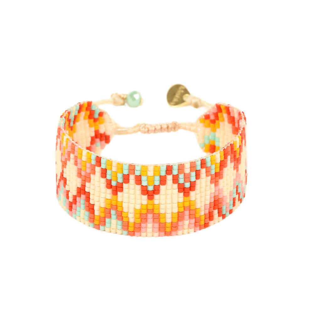 Japanese beads, polyester thread, terlenka thread, bronze gold plated Mishky logo