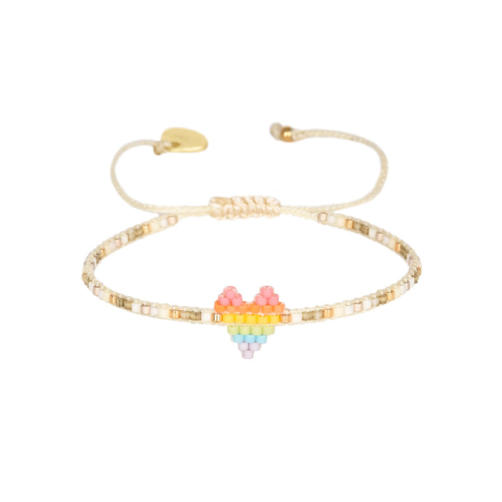 Japanese beads, polyester thread, bronze gold plated Mishky logo