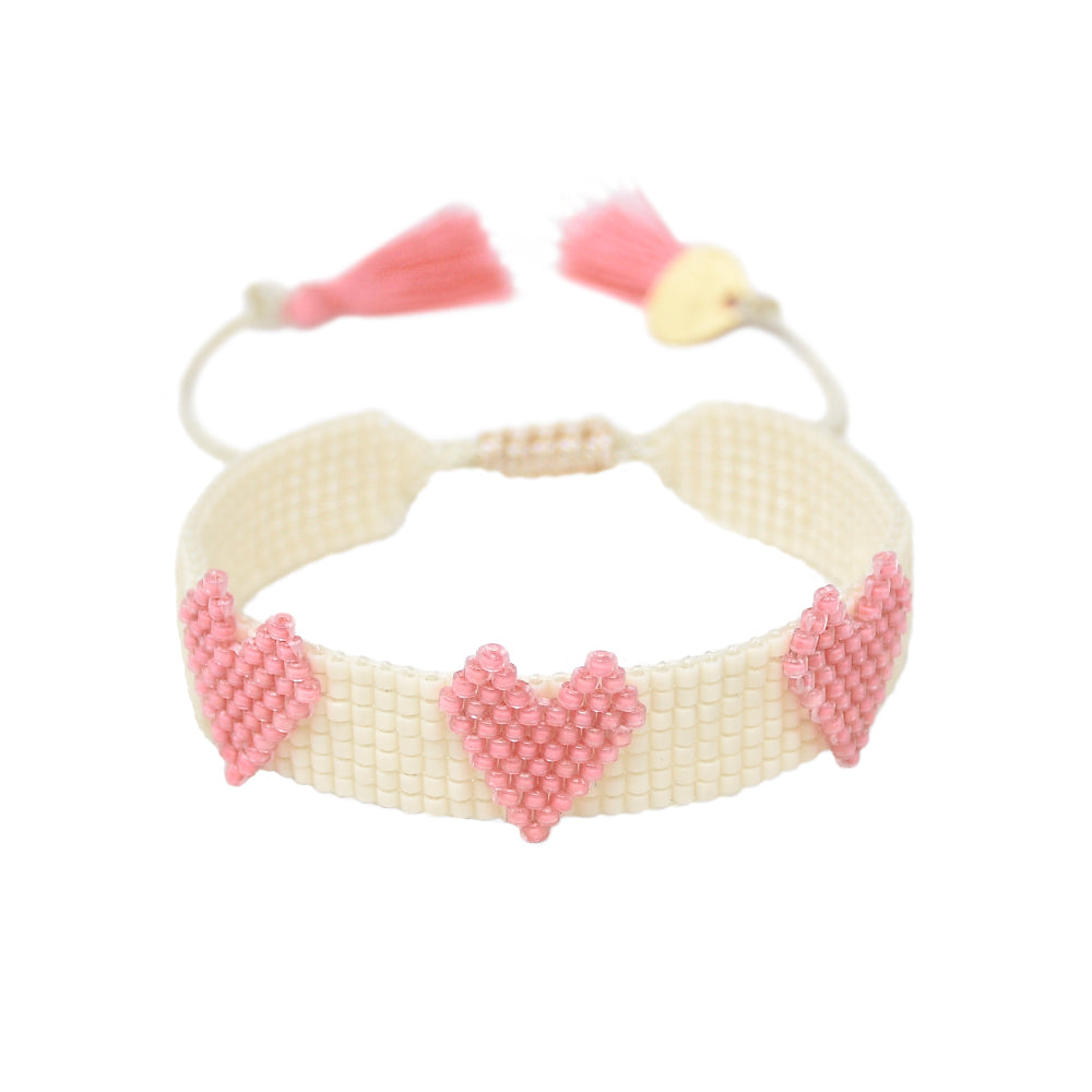 Japanese beads, polyester thread, bronze gold plated Mishky logo