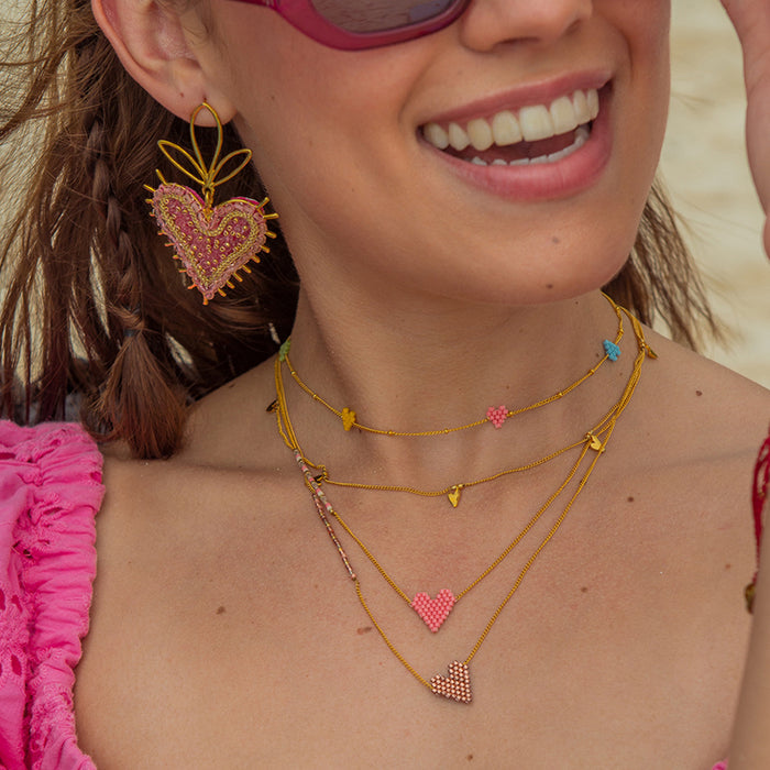 Brass gold plated chain, brass gold plated stender, japanese beads, bronze gold plated lobster clasp, polyester thread, Mishky bronze gold plated logo, golden steel ball