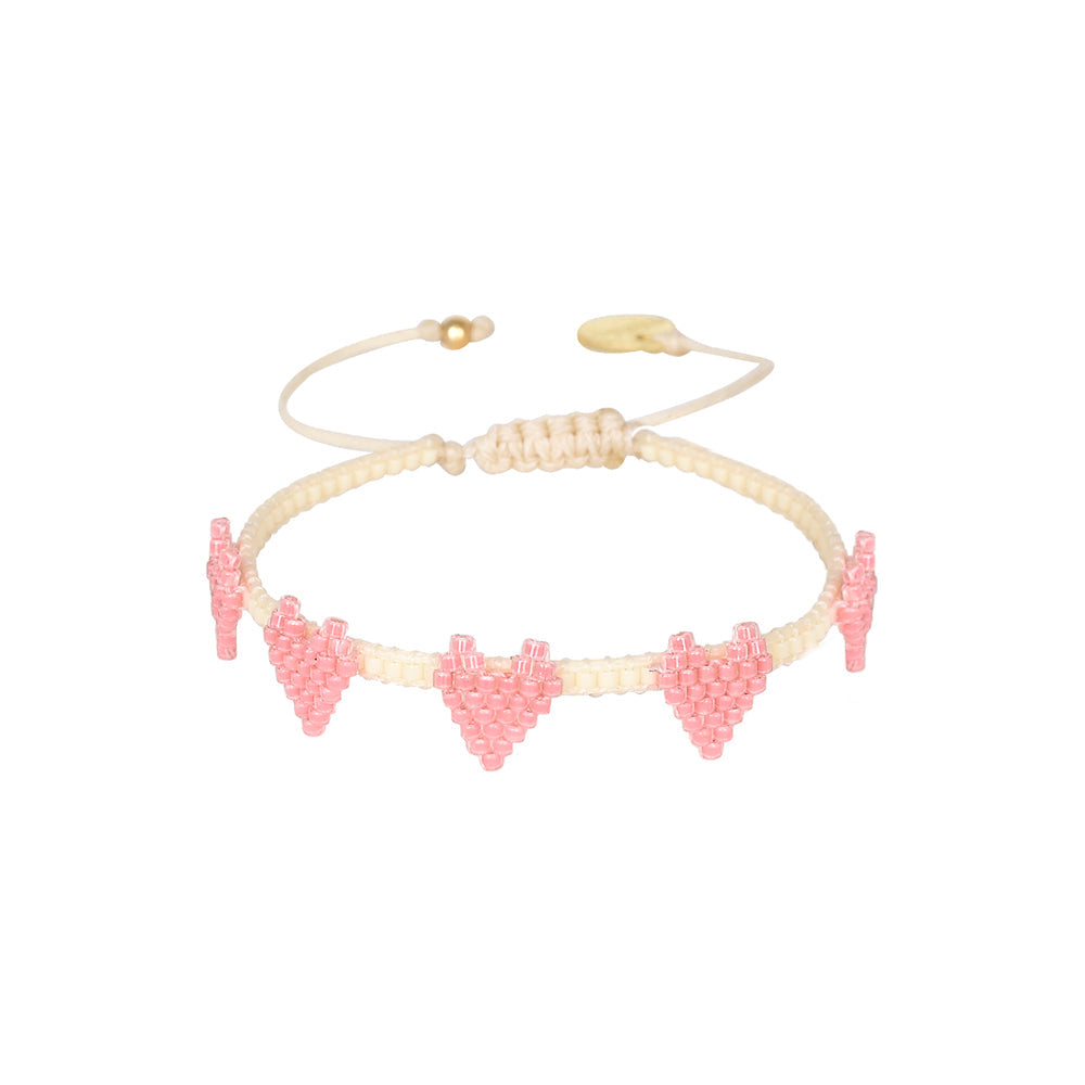 Multi Heart Row 2.0 Bracelet Beige & Pink