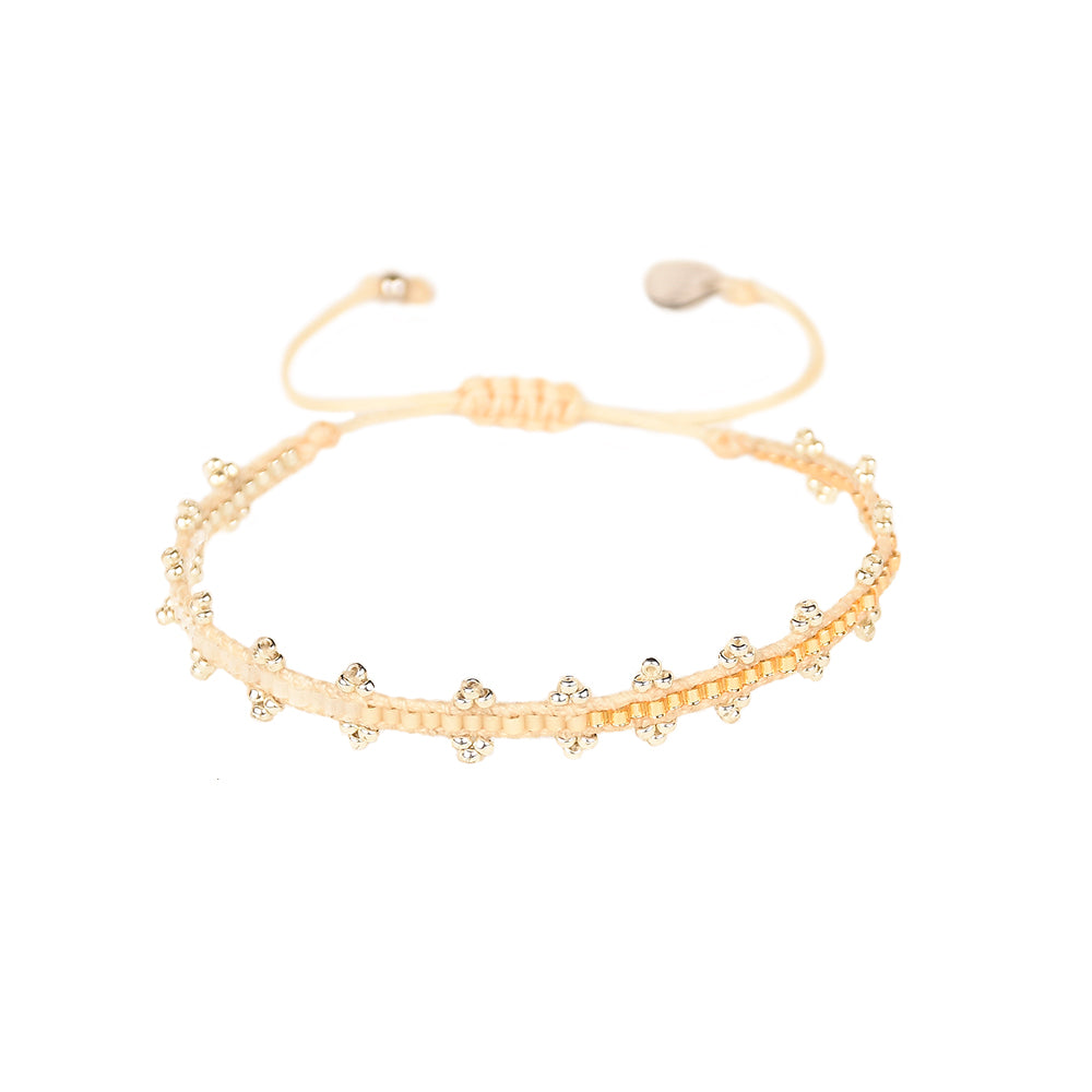 Japanese beads, polyester thread, italian thread, bronze gold plated Mishky logo