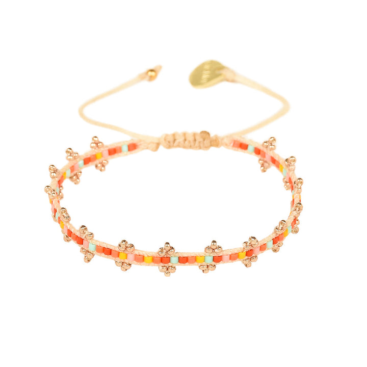 Japanese beads, polyester thread, italian thread, bronze gold plated Mishky logo