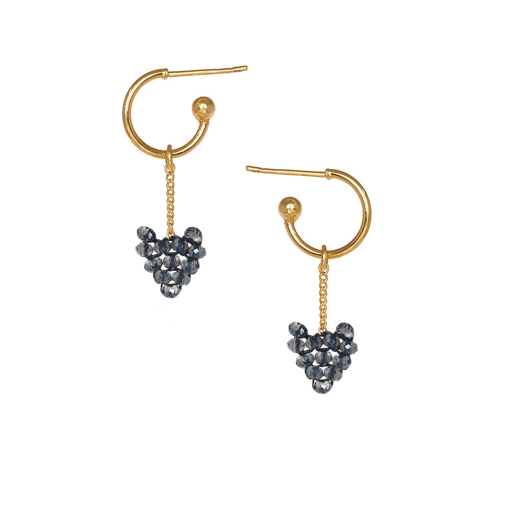 Glass japanese beads, bronze gold plated hoops, bronze gold plated love charm