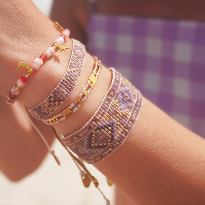 Round glass bead, polyester thread, italian thread, gold plated moon charm, gold plated star charm, gold plated lighthing charm, Mishky bronze gold plated logo
