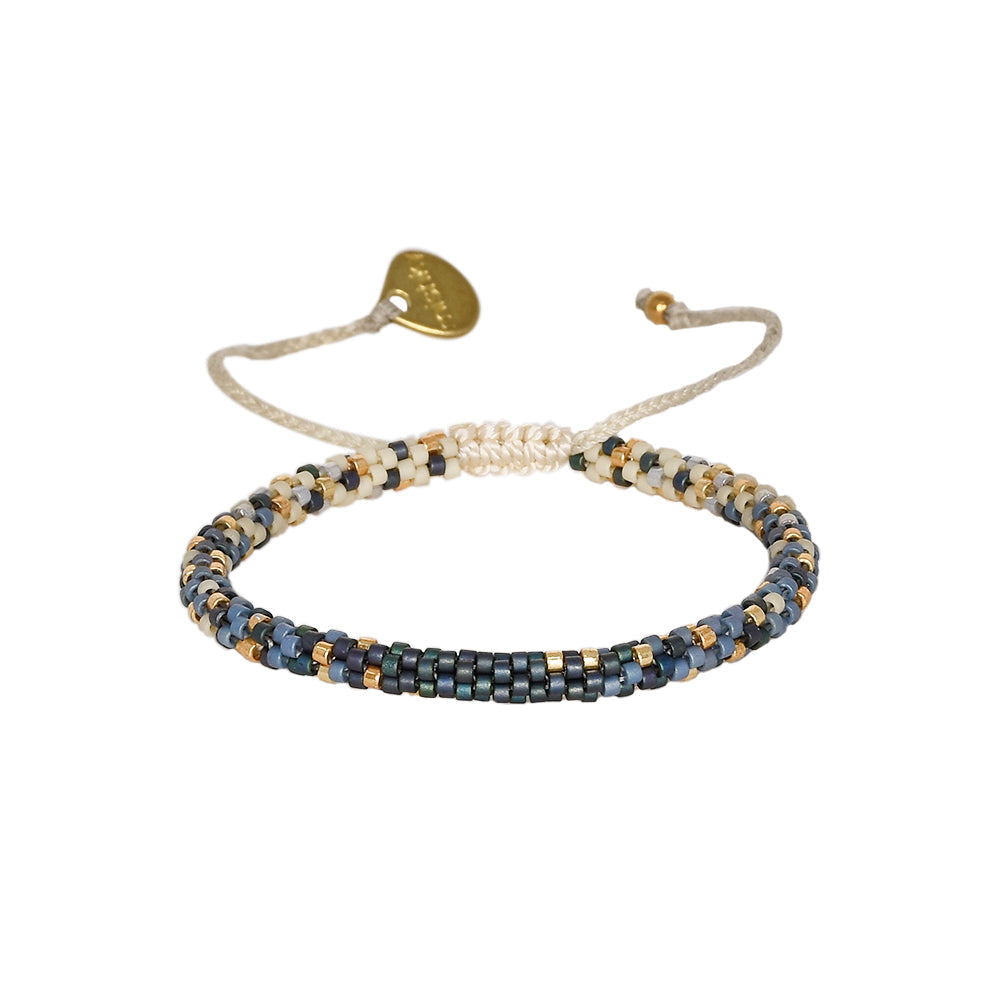 Japanese beads, polyester thread, bronze gold plated Mishky logo