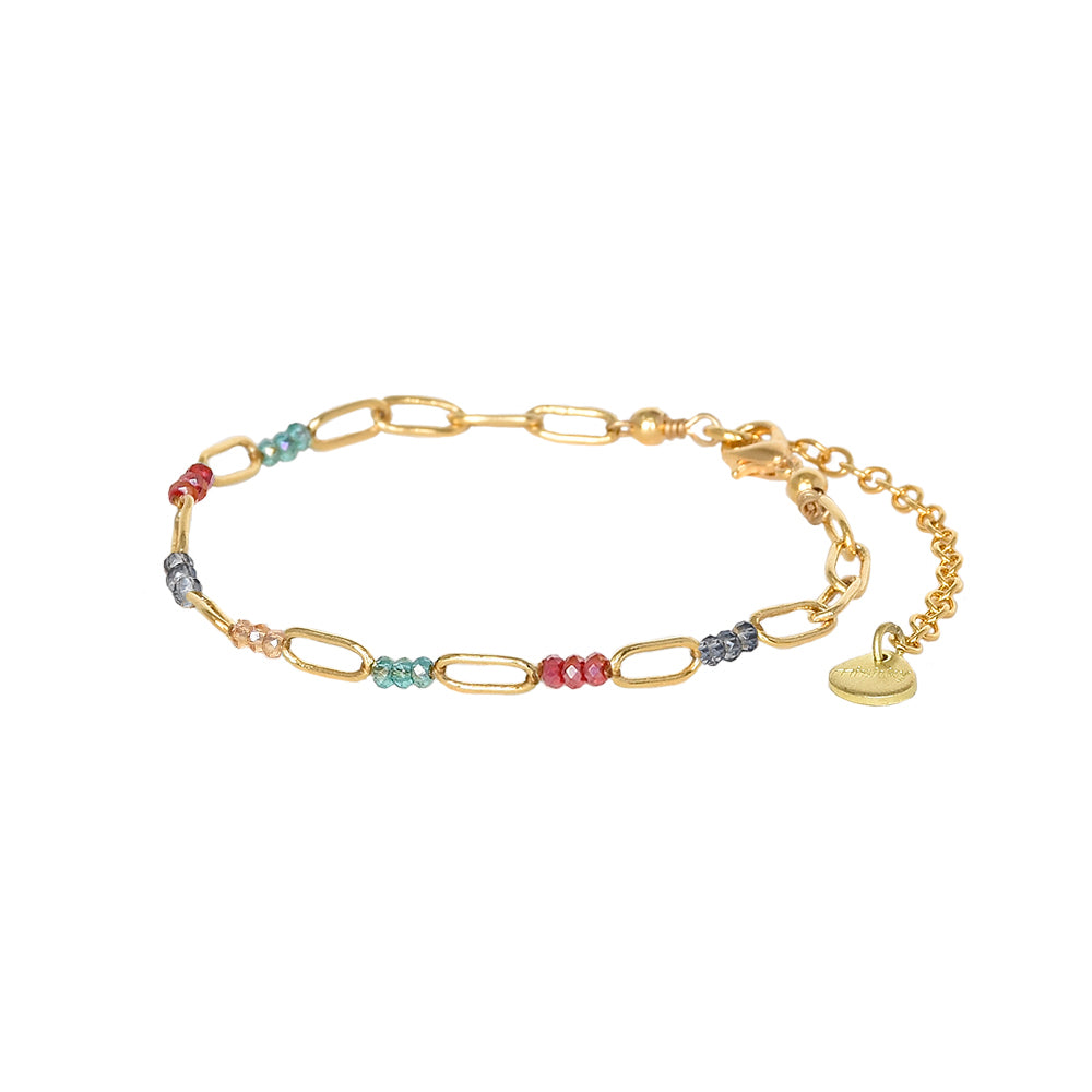 Glass roundel,Brass gold plated chain, brass gold plated stender, japanese beads, bronze gold plated lobster clasp, polyester thread, Mishky bronze gold plated logo, golden steel ball