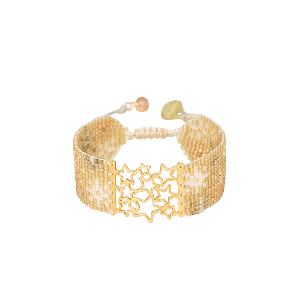 Japanese beads, polyester thread, italian thread, bronze gold plated star shape, gold plated Mishky logo