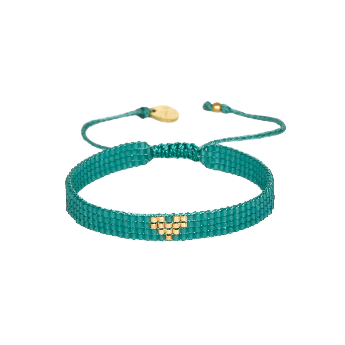 Elevate your style and spread love with this thin adjustable bracelet featuring a golden beaded heart. It makes a wonderful friendship bracelet and complements your favorite stack