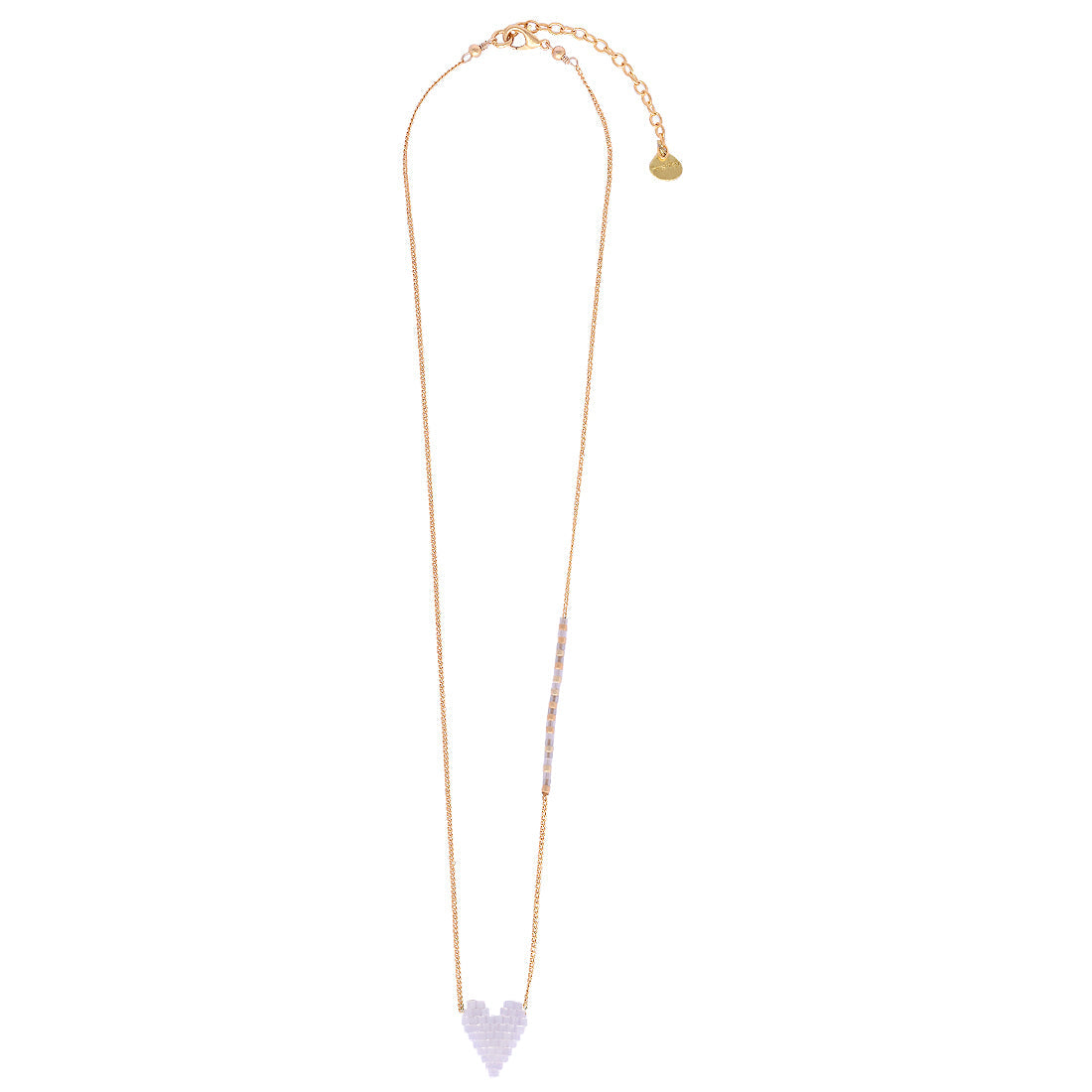 Beaded heart pendant with 18K gold chain. Versatile for any neckline. Radiate love!