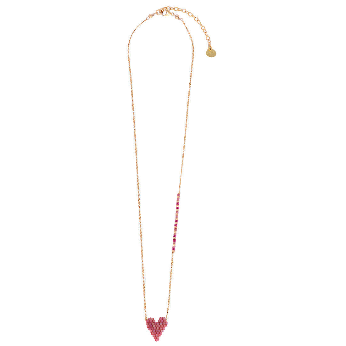 Beaded heart pendant with 18K gold chain. Versatile for any neckline. Radiate love!