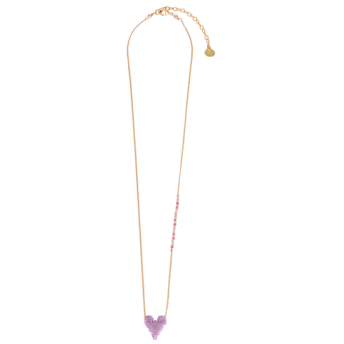 Beaded heart pendant with 18K gold chain. Versatile for any neckline. Radiate love!