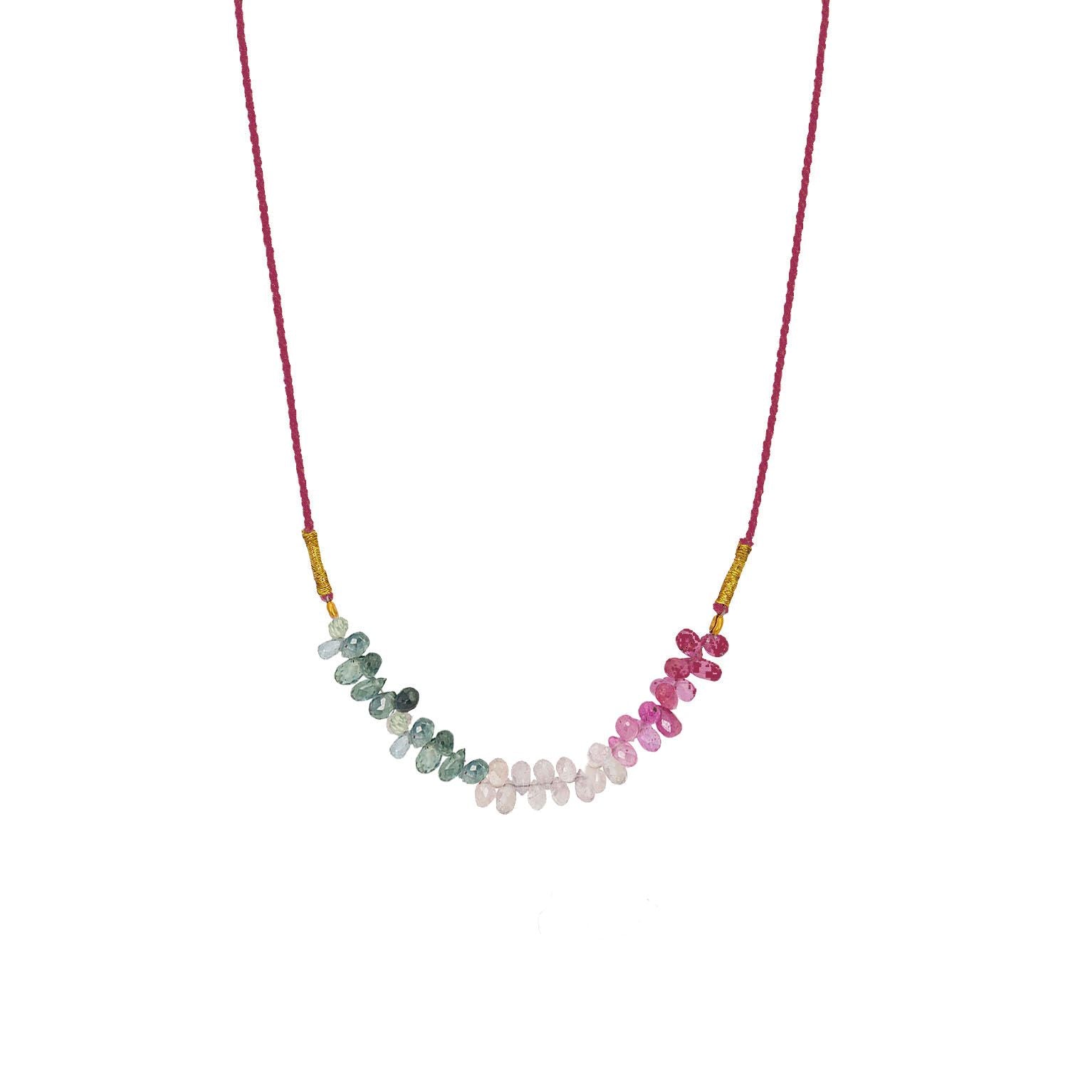 Sapphire necklace, on a delicate adjustable nude link and finished with small pompoms, a gradient of mini drops of real sapphire varying from white to fuchsia.