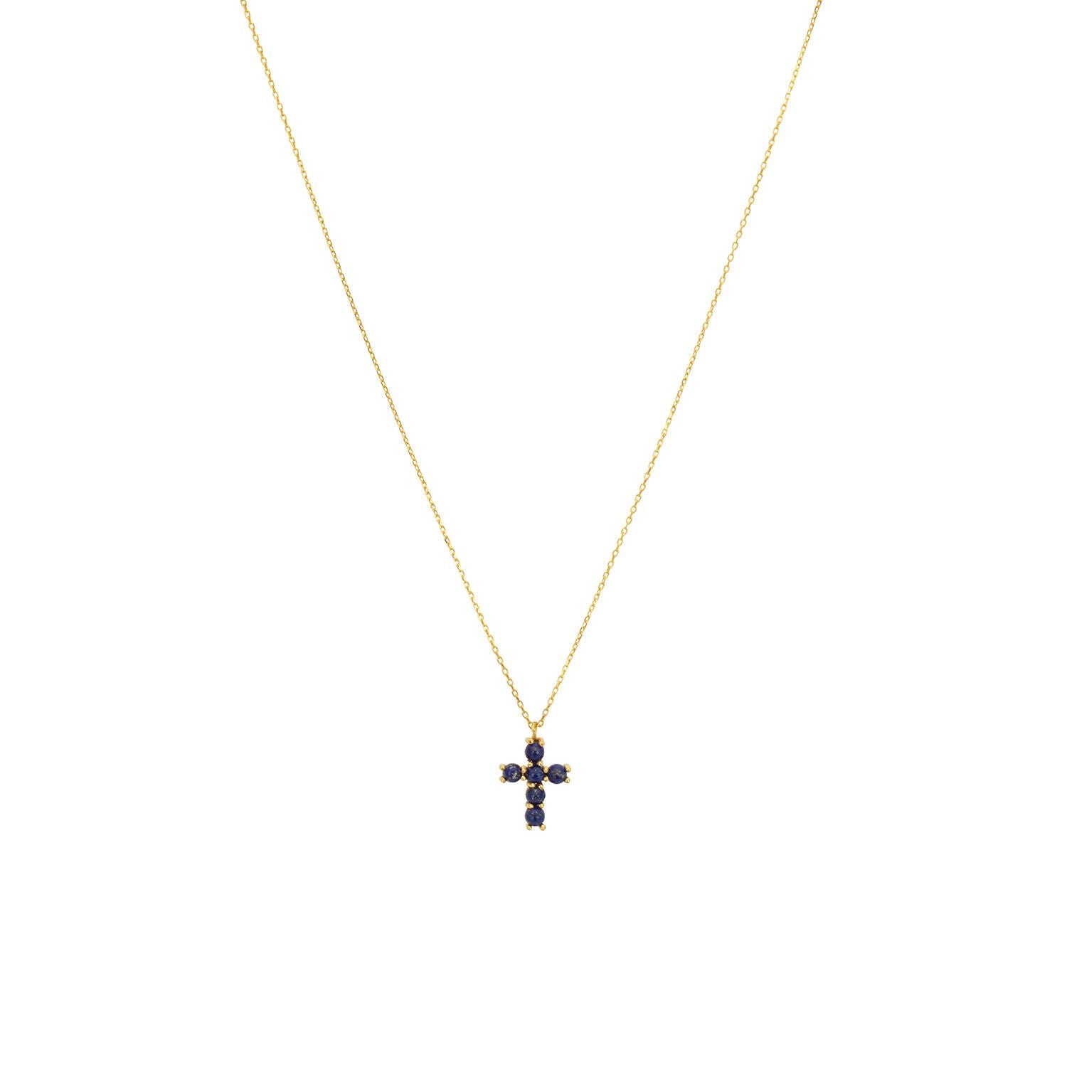 Small Corcovado Necklace. 925 silver base gilded with 18 carat fine gold 1 micron. Adorned with a fine chain and a cross in lapis lazuli cabochons.