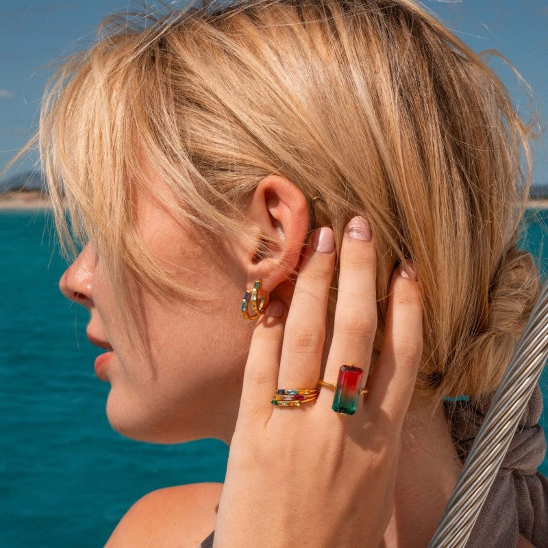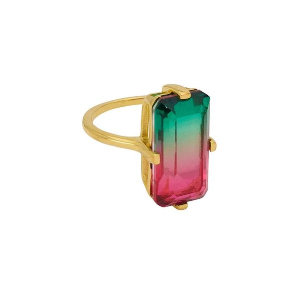 Rectangular ring, one of the Une a Une must haves, a ring on a brass base gilded with fine 18 carat 3 micron gold, and its lapis lazuli stone. Elegance and sobriety.