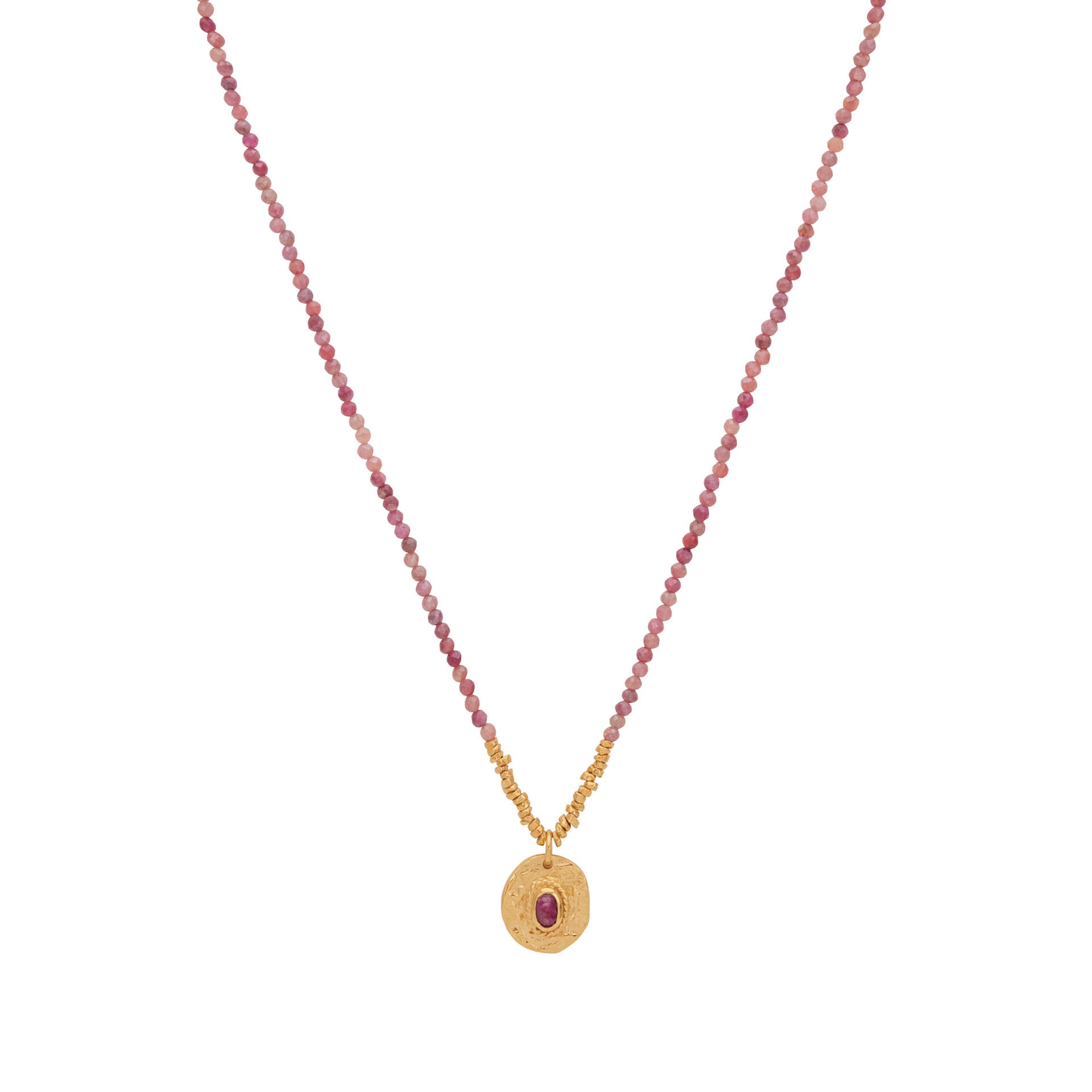 The Artémis necklace is made of ruby ??silimanite stones , precisely cut for optimal shine. Their gradient of shades, from deep red to powder pink, brings a touch of originality and modernity to this necklace. Ruby is a stone with energizing and protective properties . It is often used to promote passion, love and protection against negative energies.