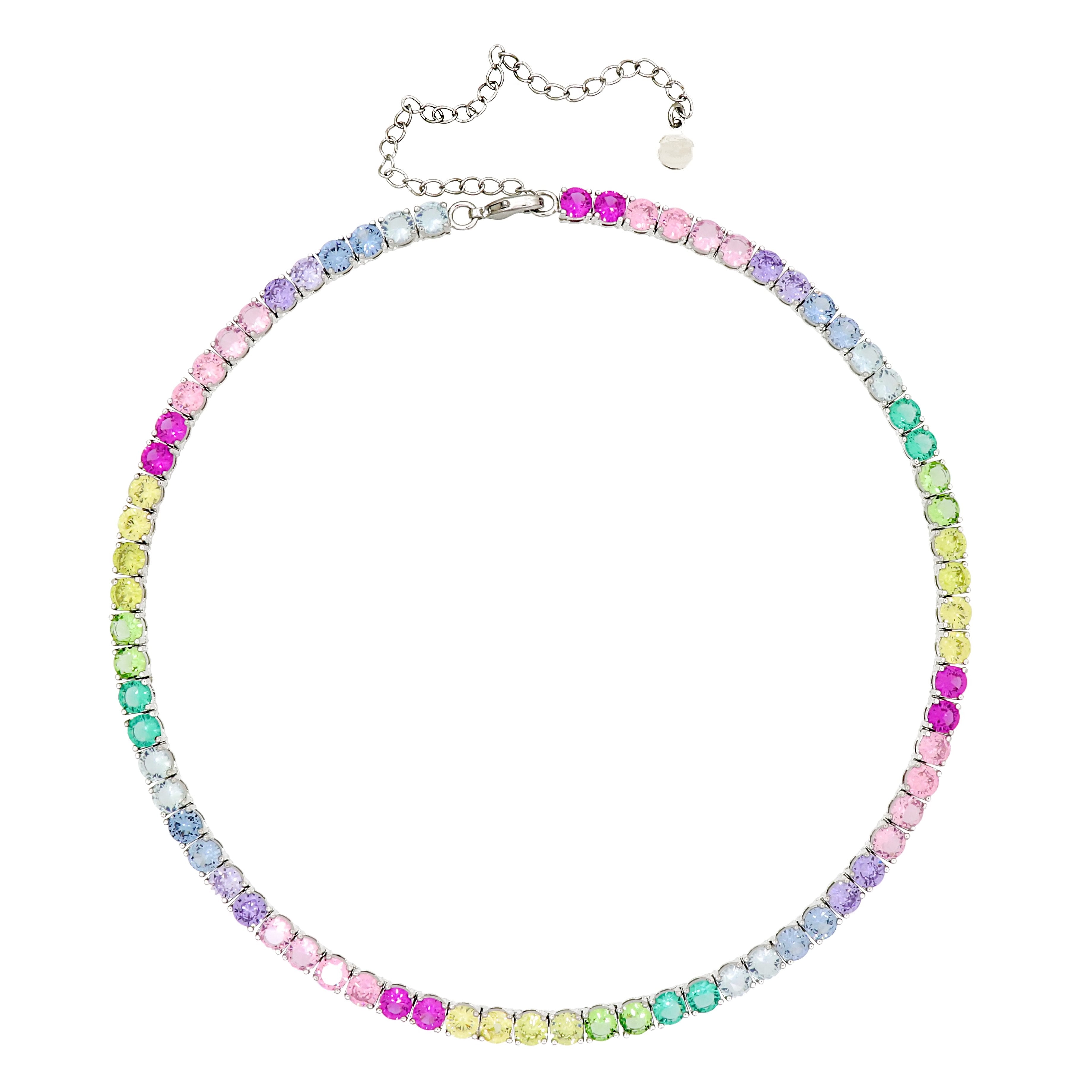 Gigi Tennis Necklace Gradient Pastel 5Mm Rainbow/Silver