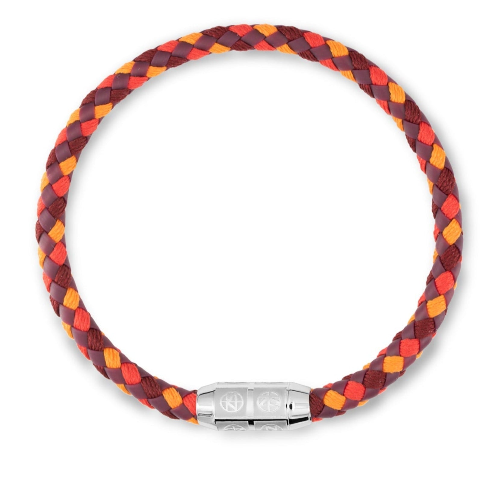Bracelet DAMIER ZS 4S Fire breathes the Mediterranée at its fullest : genuine Italian leather, handcrafted with an elaborated braiding mix of different shades of "Sunrise & Sunset" in a refined 4mm diameter. The graphical clasp with the Damier ZS pattern adds on this stylish refined design, assuring good fitting thanks to a combination of magnet and screw down system.