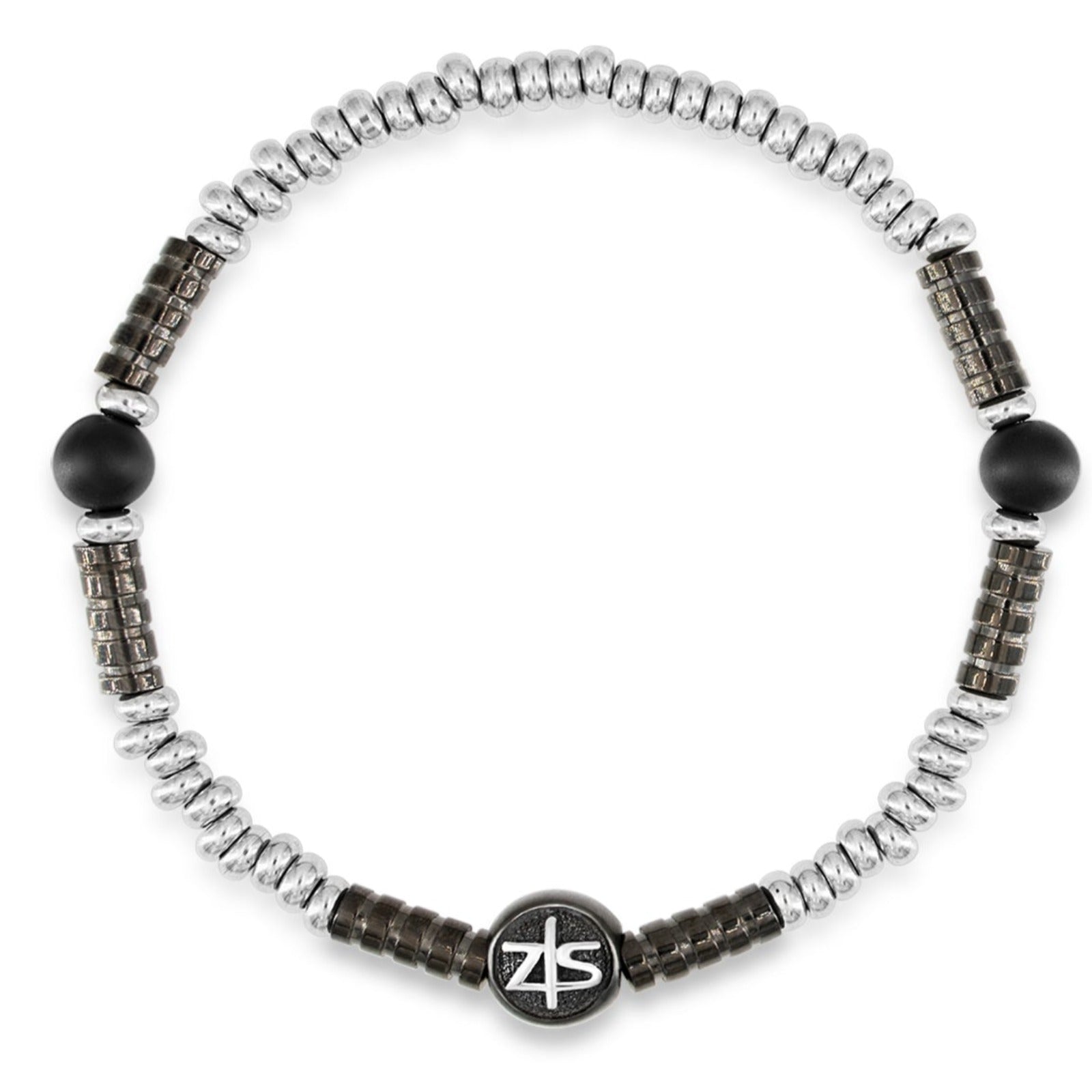 Bracelet ACCON Black with the recognizable ZS bead in an attractive alliance of 2 tones, Steel and matt Black plated beads and intersections in a changing combination. Ideal piece to mix and to match with any color. Adjustable size.