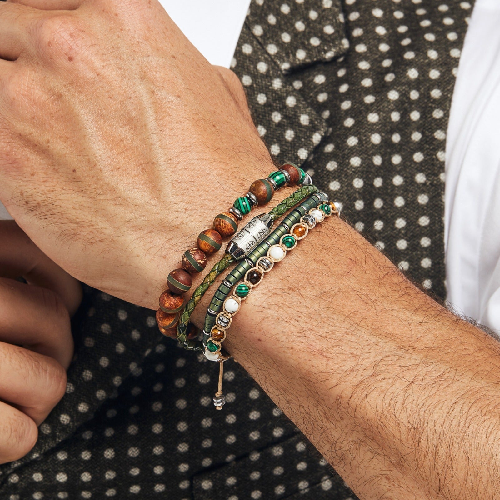 Bracelet GUINEA, stainless steel 316L, with steel and green hematites discs.